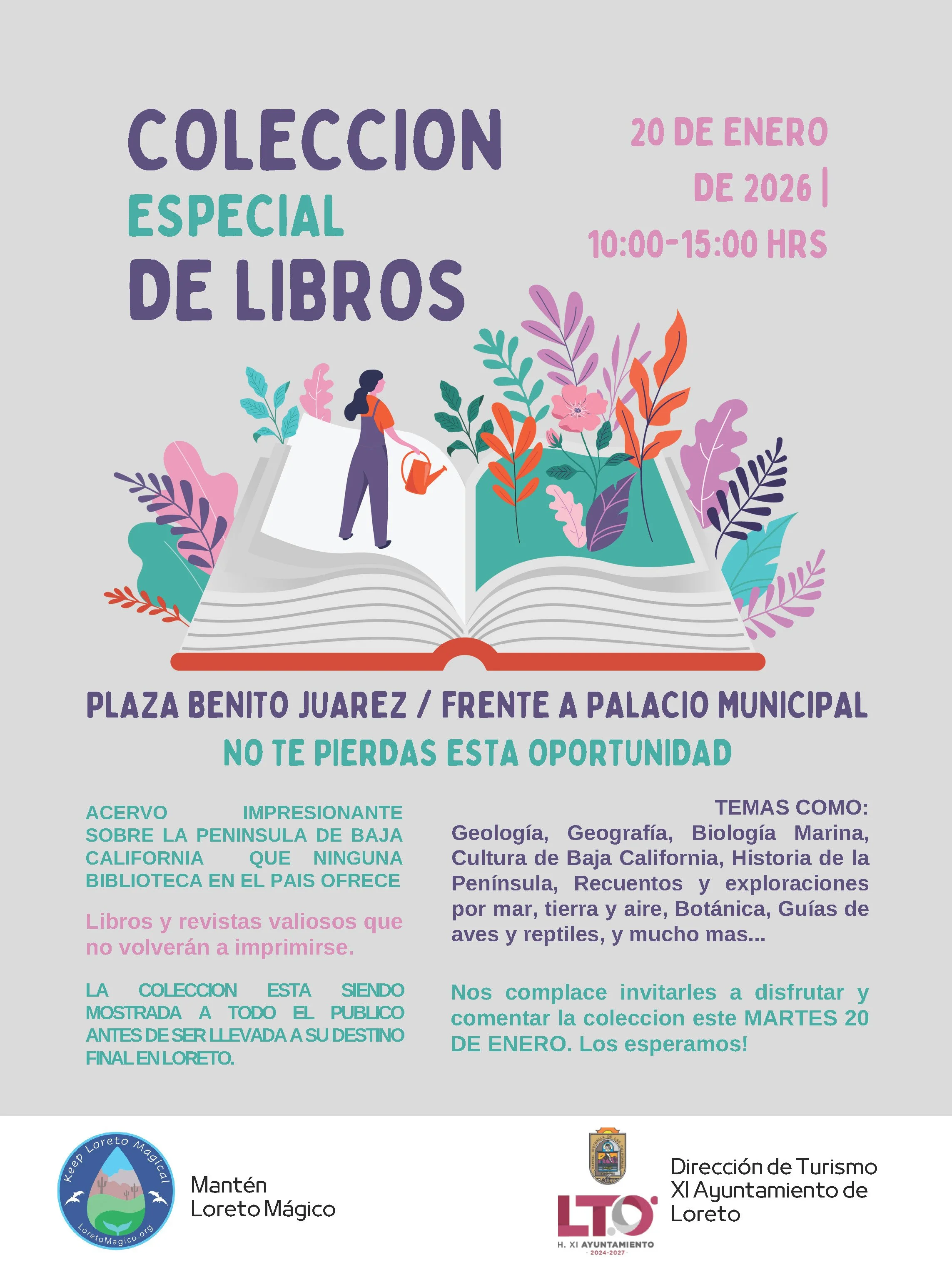 This Special Collection of Books is a unique bibliographic collection about the Baja California Peninsula, which will be presented to the public this Tuesday, January 20, 2026, from 10:00 a.m. to 3:00 p.m., in Plaza Benito JuΓ‘rez. The collection will be on public display so that the Loreto community can explore, enjoy, and discuss its contents.